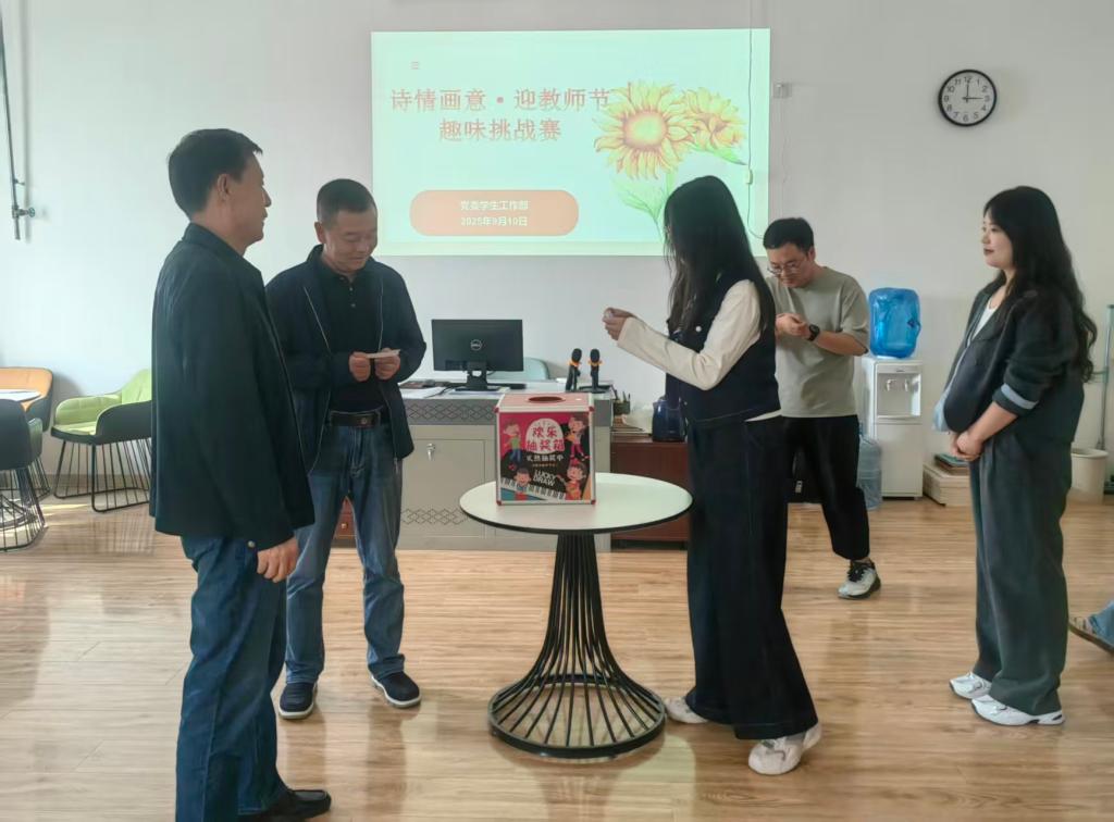 金秋送爽,桃李芬芳,9月10日下午,党委学生工作部在和平校区润德楼团体辅导室举办“师情画意”趣味挑战赛,以别开生面的方式庆祝第41个教师节,教师们在欢笑与掌声中共度属于自己的节日。