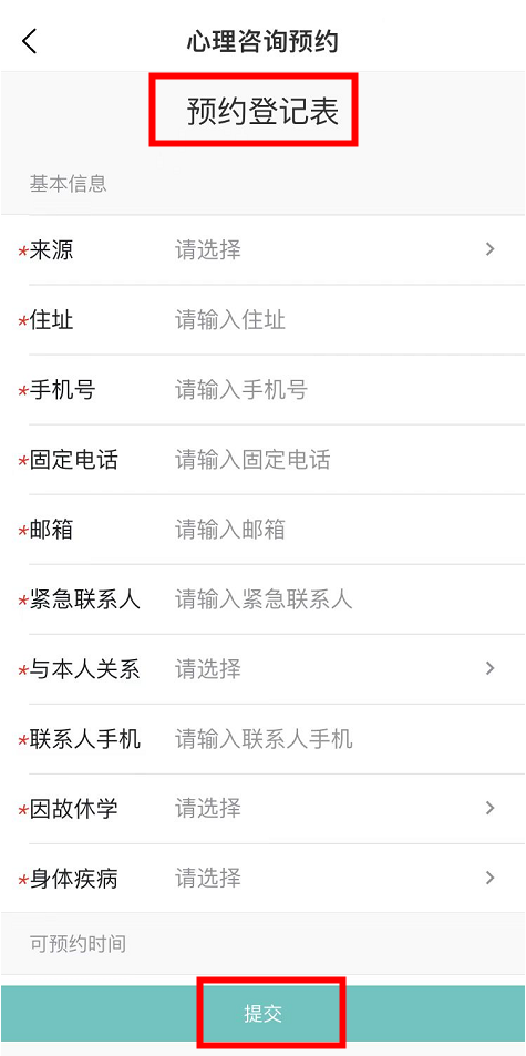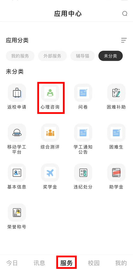 在手机移动端登录“今日校园”APP,在“心理咨询”模块中进行预约,操作流程具体如下: