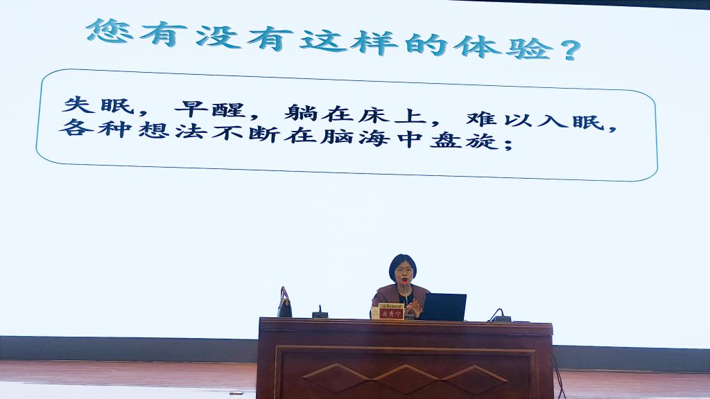 讲座从“猴子心理学实验”切入,引出现代健康观念中心理健康不可或缺的重要性。结合大学生所处的特定人生发展阶段,深入剖析了当代大学生面临的主要压力源,针对大学生群体中常见的抑郁、焦虑等心理问题,岳医师运用丰富的临床案例,清晰阐述抑郁症、焦虑症的核心症状和典型表现,并强调了早期识别和积极干预的关键作用。提醒同学们应摒弃“病耻感”,主动寻求专业帮助,是勇敢和负责任的表现。针对同学们普遍关心的睡眠问题,岳秀宁医师分享了科学改善睡眠质量的建议,倡导同学们养成良好的睡眠卫生习惯,为身心健康打下坚实基础。