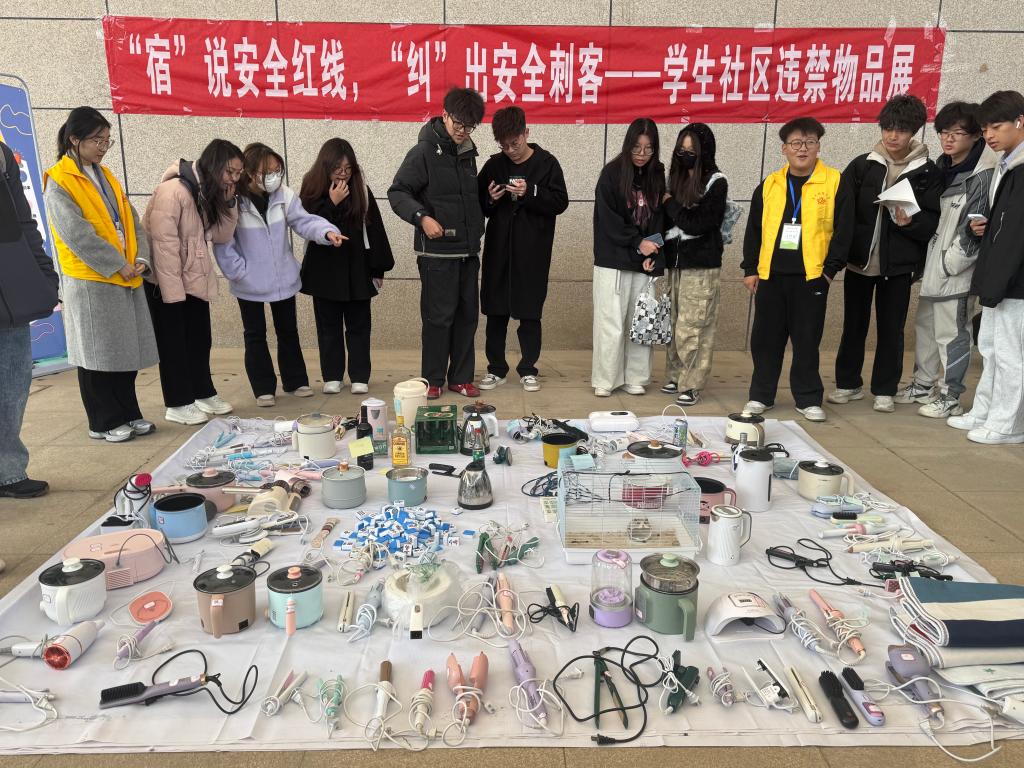 为进一步规范学生社区管理,提升学生宿舍安全意识,11月13日,学生社区党工委在下沉广场开展了以“‘宿’说安全红线,‘纠’出安全刺客”为主题的违禁物品展示活动。