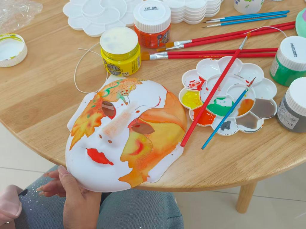 “把情绪画在脸上”活动环节,不设绘画技巧门槛,空白面具与高饱和丙烯颜料让同学们得以用色彩自由诠释情绪,每一笔涂鸦都是内心的温柔释放。创作完成后,“情绪面具分享角”成为现场焦点,同学们自愿分享作品背后的故事,在倾听与交流中,无形的情绪被看见、被理解。“把情绪画出来、说出来,心里的包袱轻了很多”,一位同学的分享道出了大家的心声。