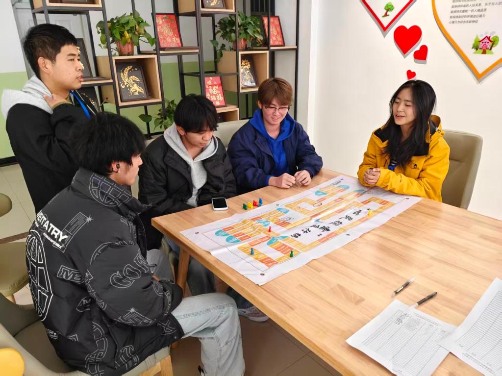 “棋”乐无穷环节,巨型飞行棋棋盘旁,同学们围坐掷骰、携手前进。轻松愉悦的游戏氛围让大家放下拘谨、敞开心扉,在互动中加深了解,在趣味任务中实现自我认知与情绪疏导。