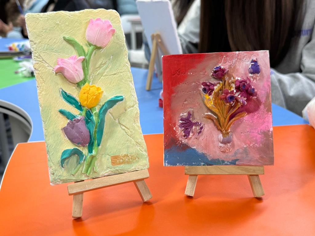 活动伊始,工作人员结合图文展板,生动讲解香薰文化的发展脉络,从古埃及的香料贸易到唐宋时期的熏香雅趣,再到现代芳香疗法的原理,让同学们感受香薰文化的深厚底蕴。针对香薰石膏,工作人员详细介绍了其环保材质、吸香特性及安全使用方法,并现场演示调色技巧与渐变涂刷手法,为创作环节奠定基础。
