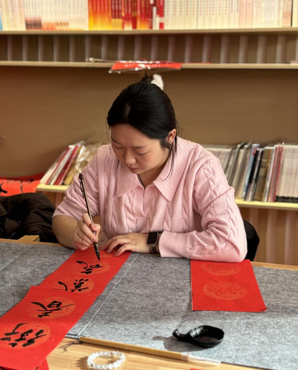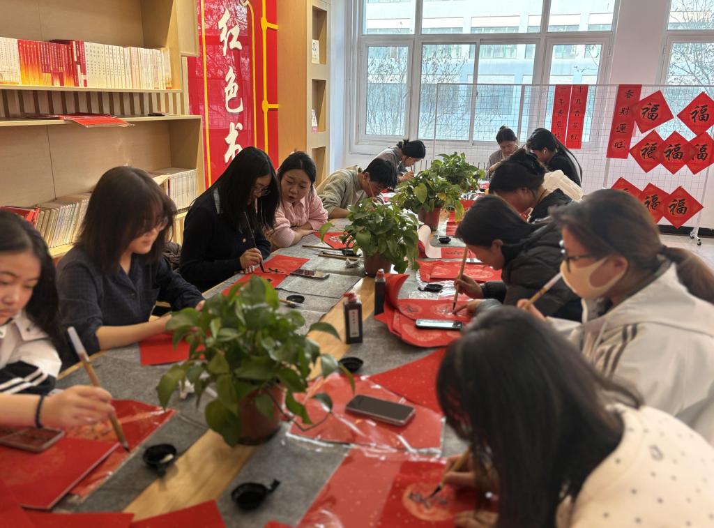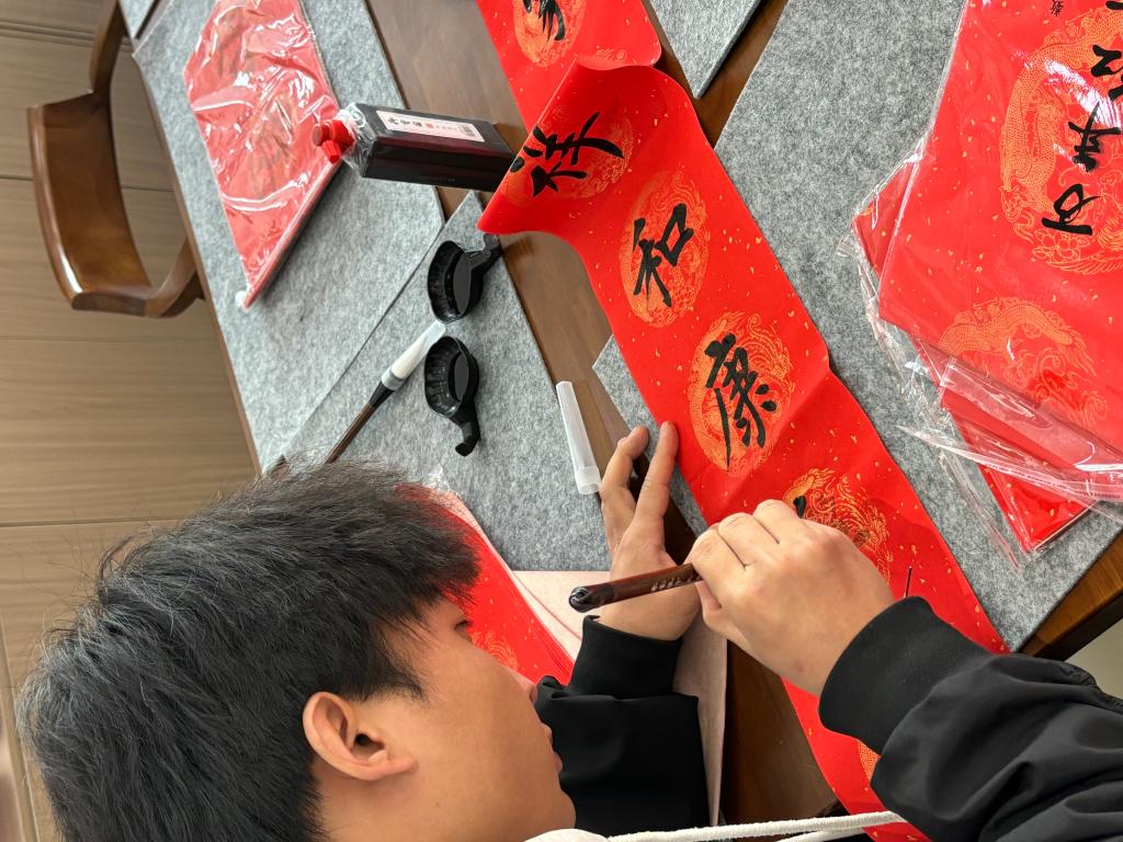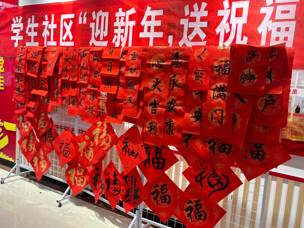 岁末将至,年味渐浓。为弘扬中华优秀传统文化,丰富校园文化生活,营造温馨祥和的新春氛围,12月27日下午,学生社区党工委邀请我校书法协会学子,在和平校区学生社区开展了“翰墨迎新春 书香满社区”写春联活动,为社区学子送上新春的美好祝福。