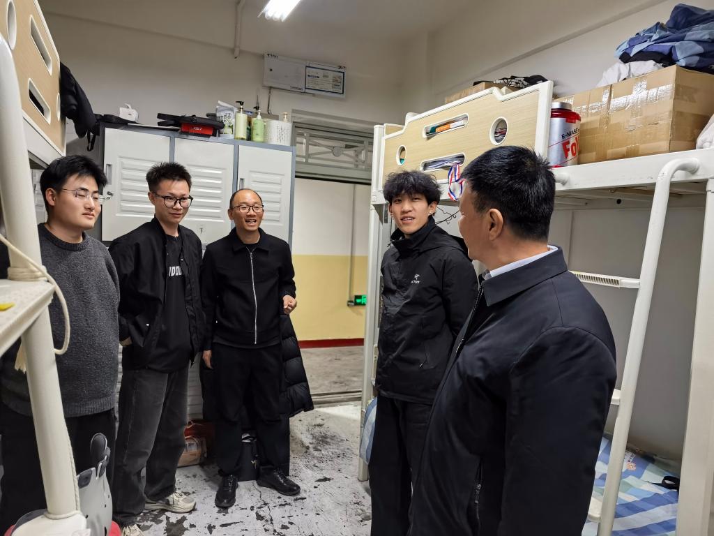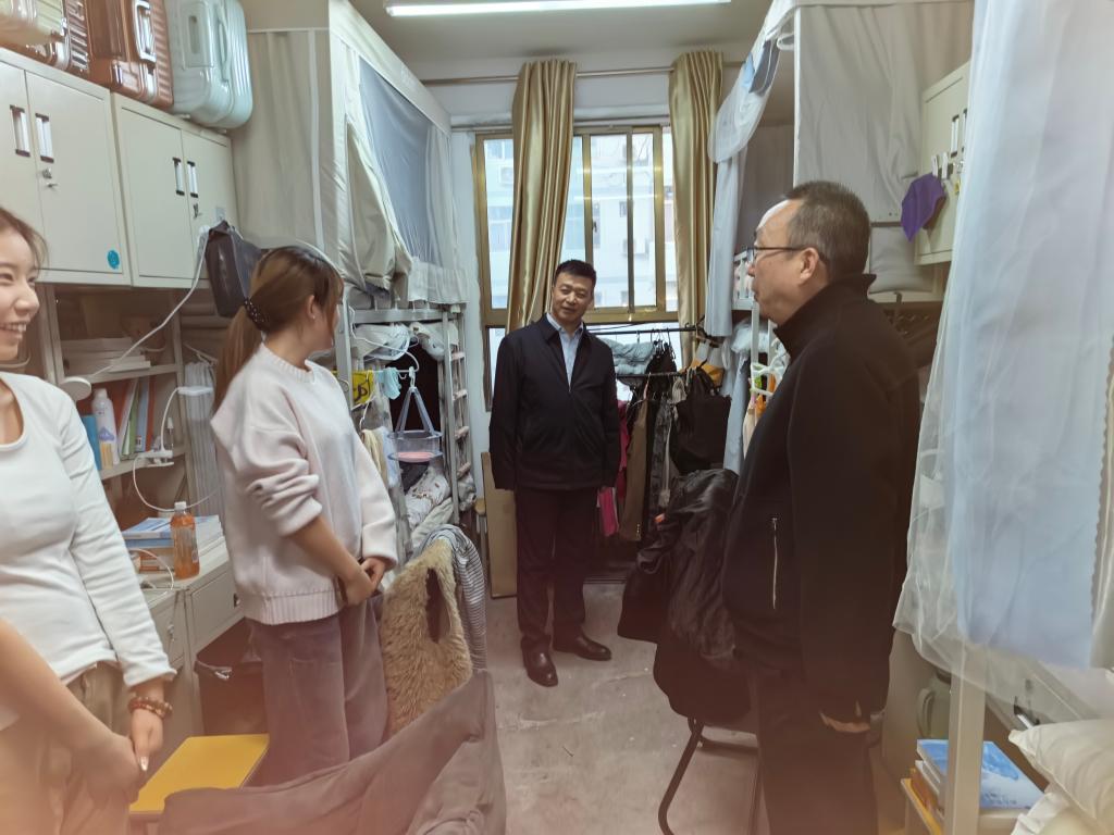 调研过程中,南星恒实地查看了学生社区水电设施运行、消防安全保障、环境卫生整治、公共空间运行等情况,重点检查了社区网格化管理落实、值班人员入驻值守、学生诉求快速响应等机制的落实情况。随后,南星恒一行先后前往和平校区、东岗校区和段家滩校区学生宿舍,与返校学生亲切交谈、细致沟通,详细了解了同学们的返校行程、住宿适应情况、新学期学业规划及生活保障需求,认真倾听同学们在餐饮服务提升、宿舍设施维护、学习空间优化等方面的意见建议,耐心回应学生关切。